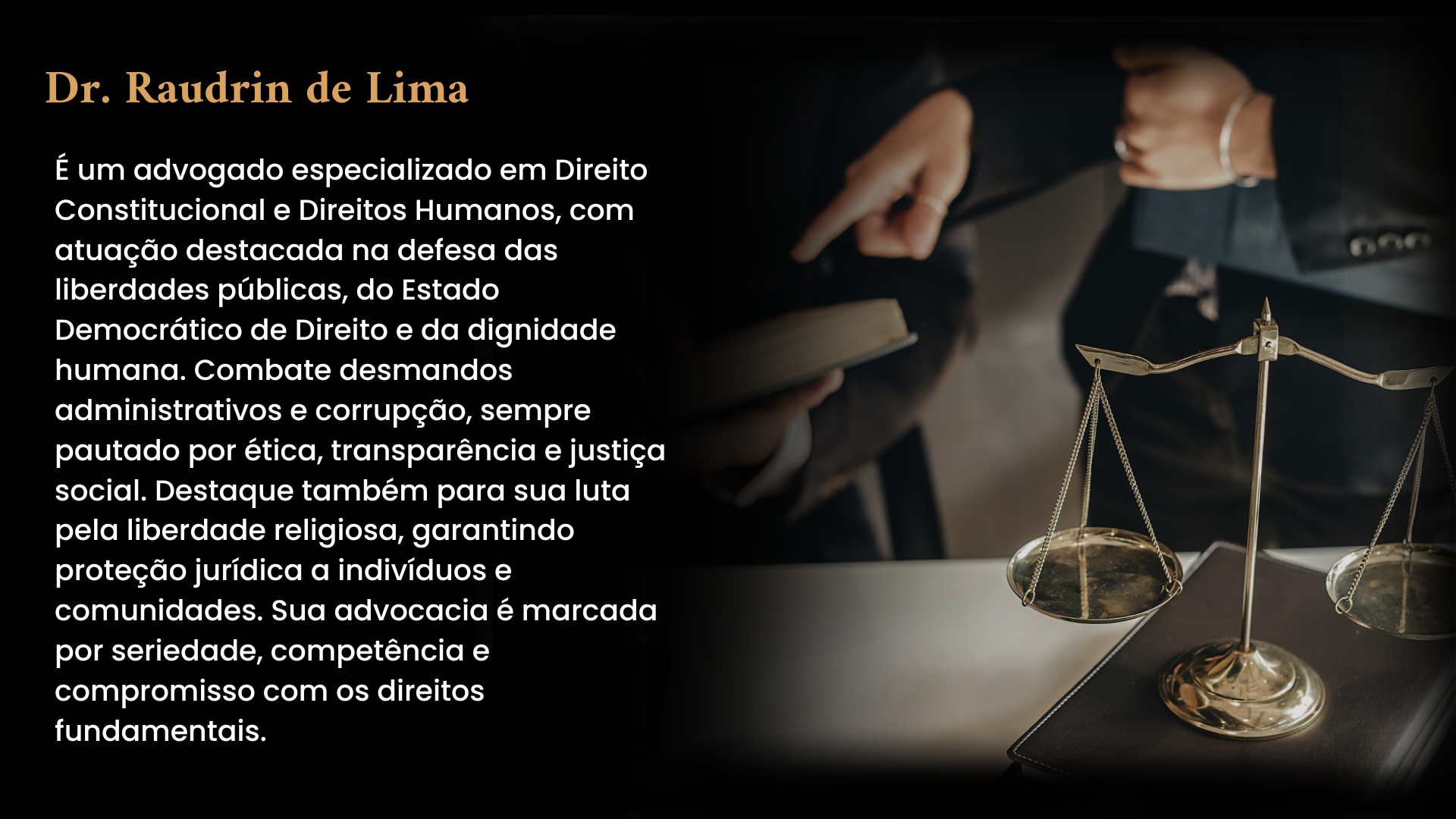 “Tive a honra de ser representada pelo Dr. Raudrin de Lima em um momento muito delicado da minha vida. Sua postura firme, aliada a um profundo conhecimento jurídico, fez toda a diferença. Ele não apenas defende causas — ele luta por justiça com coragem e humanidade. Um advogado raro, comprometido com a verdade e com os direitos do cidadão. Minha eterna gratidão!”